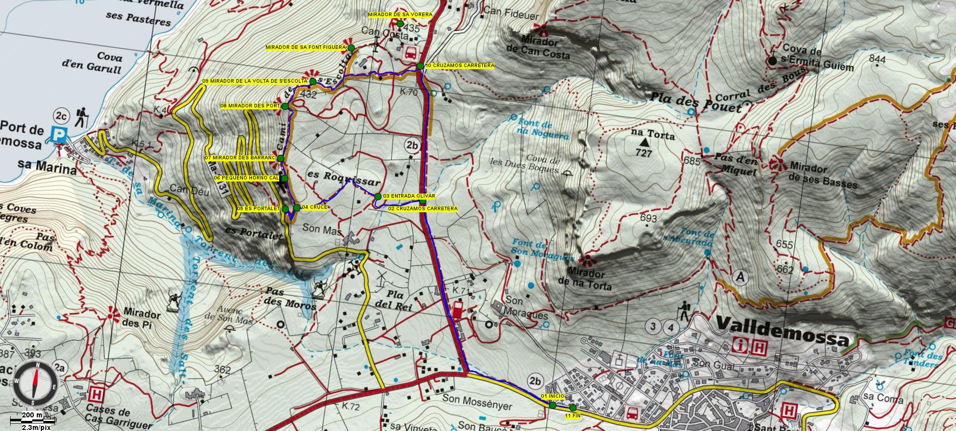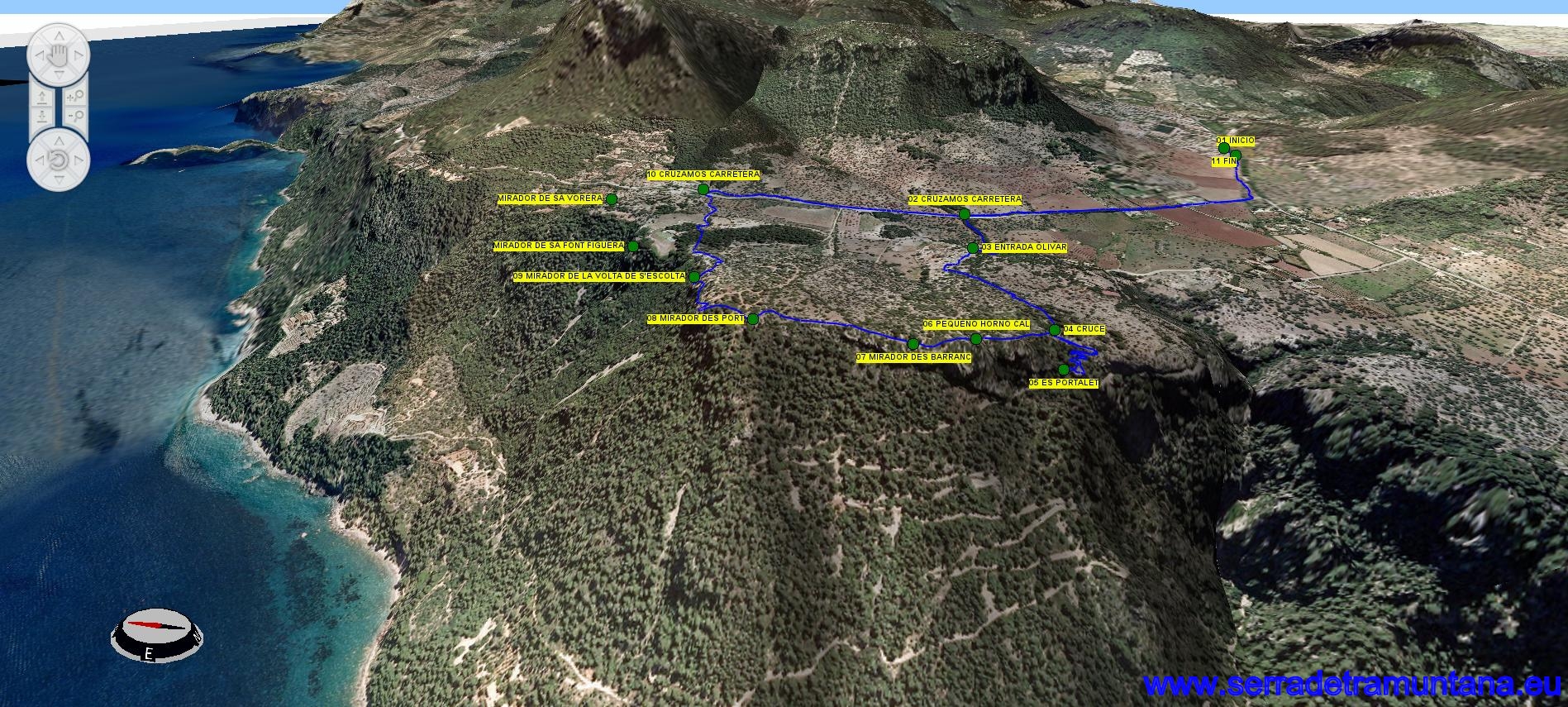 El Camí de s'Escolta ya lo publiqué en el año 2013, con muy poca información, ya que apenas conocía la zona. Alguna vez –cuando el chalet todavía estaba en construcción- pudimos llegar sin problemas al mirador de Sa Font Figuera y al de la Vorera, junto a Can Costa; ahora cerrados los dos a cal y canto. Los marco en el mapa con su WP, pero se puede apreciar claramente que no llegamos hasta ellos, pero me ha parecido interesante marcarlos con su nombre en el mapa.
