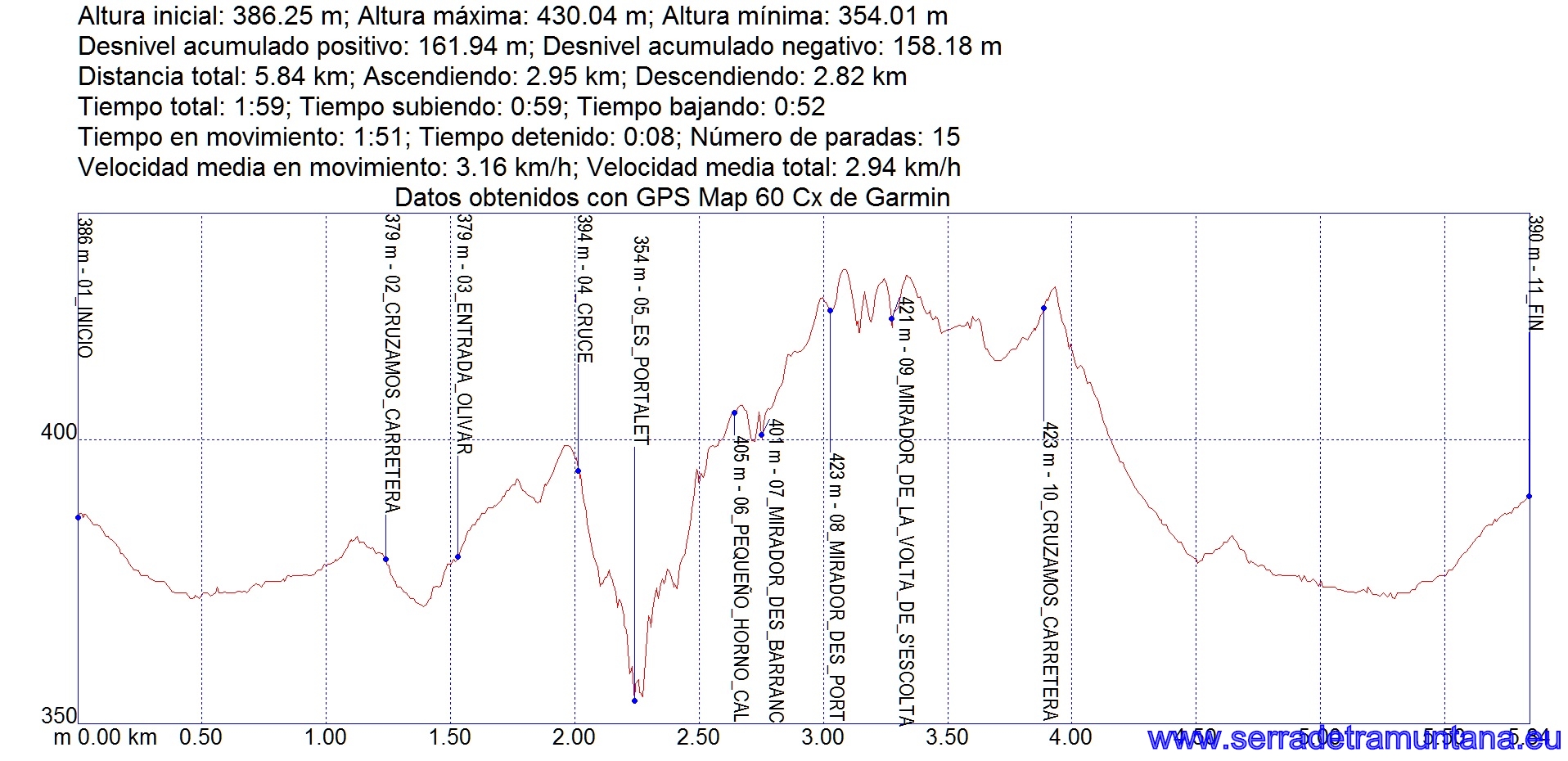 Duración: Unas dos horas en total, a paso tranquilo; 1 hora y 51' en movimiento, según el GPS.