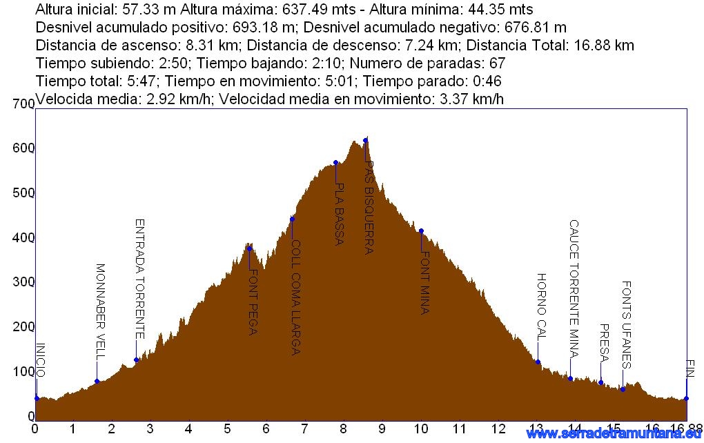 Grado de dificultad: Media, por la distancia a recorrer y por el Pas d'en Bisquerra que hay que emplear las manos.