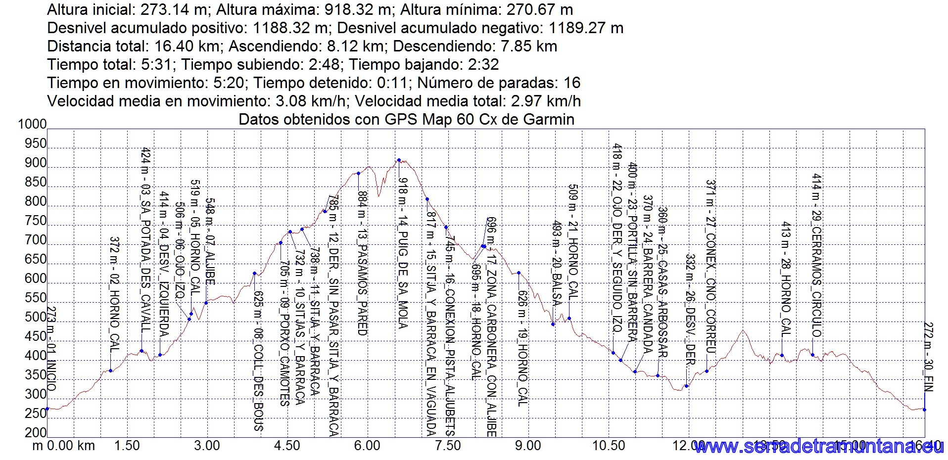Recorrido: 16,4 km. según Perfils, el programa que analiza los datos del GPS
