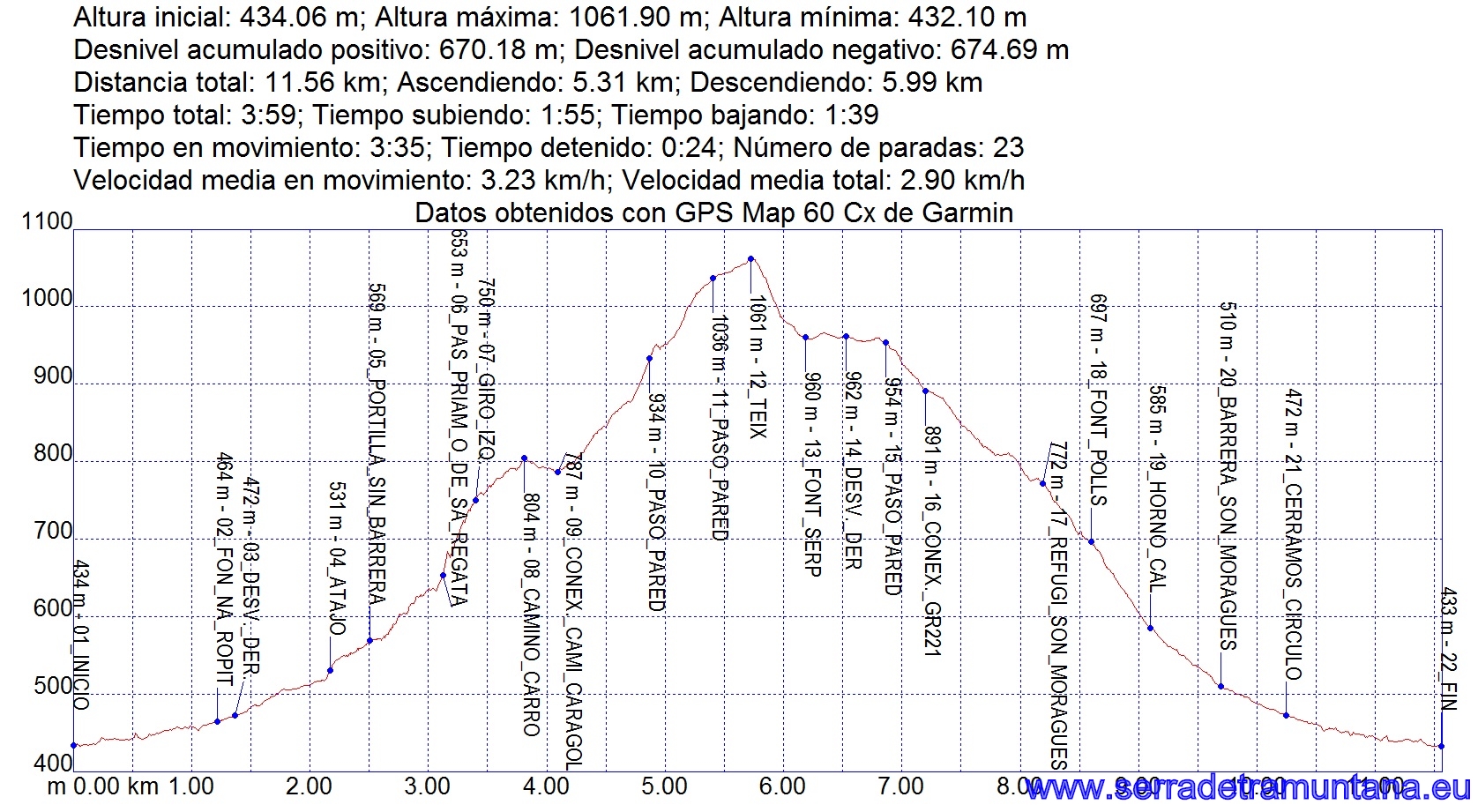 Recorrido: 11,56 km. en total