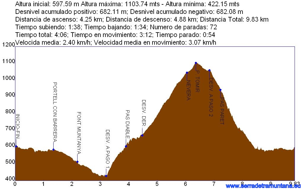 Duración: 4h.6' en total. 3h.12' en movimiento según el GPS.