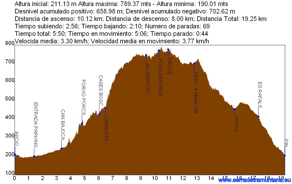Duración: 5h. 50' en total y 5h. y 6' en movimiento según el GPS.