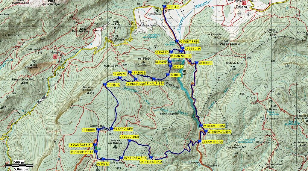 Grado de dificultad: Media. Difícil la orientación y seguir el camino adecuado entre Es Freu y Cas Garriguer.