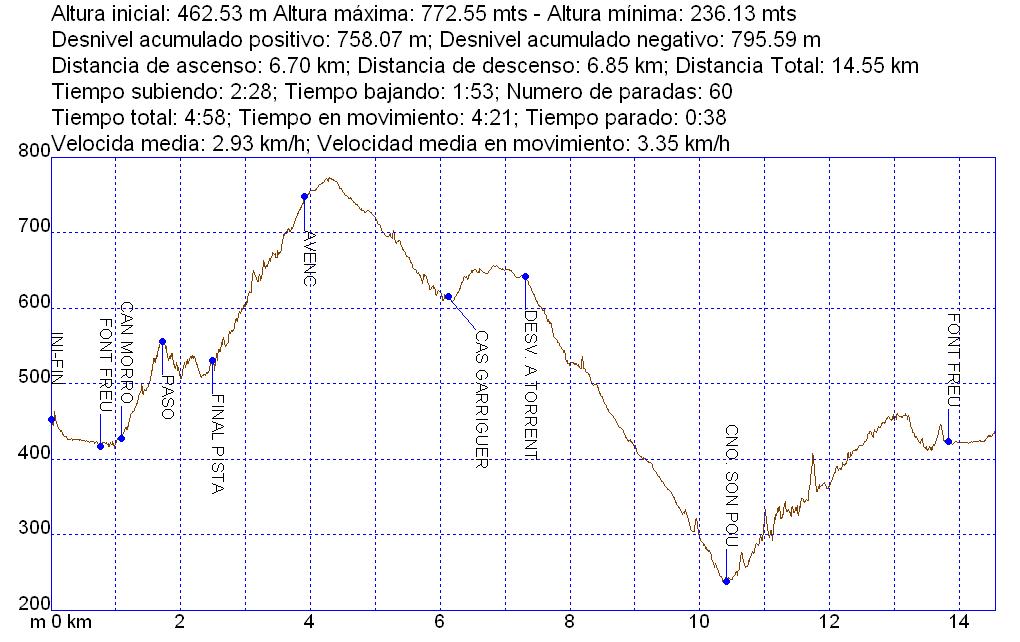 Duración: 5 horas en total. 4h. 21' en movimiento según el GPS