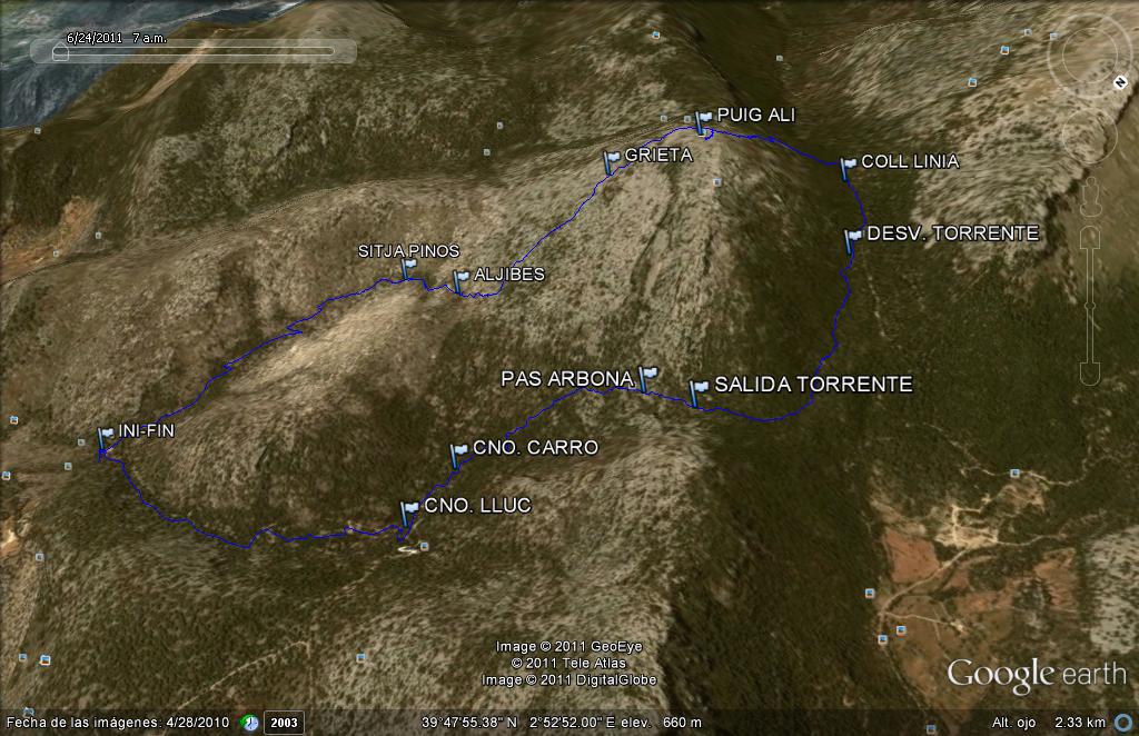 Desnivel: Partimos de 366m. y llegamos hasta los 1038m. del Puig de n'Alí.