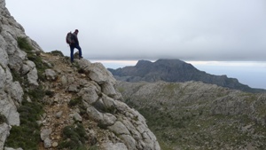 La ruta de hoy nos hace pasar por tres cimas y sólo una de ellas es un “mil”. El Puig de n’Alí (1038m.) es el primero que ascendemos y el más fácil de los tres, al menos de subida. La bajada es otra historia. Los otros dos, aunque más bajos, presentan una ascensión algo más complicada, por lo que esta ruta sólo la aconsejo a montañeros experimentados.