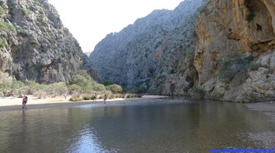 Otra opción para realizar esta ruta y quizás la menos complicada de organizar, es empezar en la Calobra remontando el Torrent de Pareis hasta s’Entreforc y volverlo a bajar.