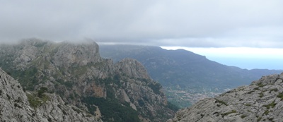 Aparcamos en la cara Sur del túnel de Monnàber –entre Sóller y Cúber- y empezamos a caminar por la pista que atraviesa toda la Coma de Son Torrella hasta el collado a la altura del Portell de sa Costa (31’). En este collado tenemos a la derecha la citada portilla, de frente la larga bajada hacia la Font des Verger y el Barranc de Biniaraix y a la izquierda las altas paredes que son el cortado de una modesta cima de 974 metros de altitud.