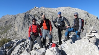 En Enero de 2008, ya realicé esta ruta con el GEM, guiados por Jaume Escalas y quería volver a realizar este complicado itinerario para comprobar si me seguiría pareciendo tan exigente como lo fue en su momento. Efectivamente, los años no pasan en balde y a pesar de lo corta, me resultó una de las rutas más duras que he hecho últimamente, no así para el resto del grupo, bastante más en forma que yo. Es exigente por la verticalidad de la subida, el paso de la grieta –también muy vertical- antes de la cima y la bajada por la cresta, que tampoco tiene desperdicio. Así pues, esta ruta únicamente la recomiendo a montañeros muy experimentados acostumbrados a transitar por mal terreno, que no tengan vértigo y a ser posible que vayan acompañados de alguien que conozca la zona.